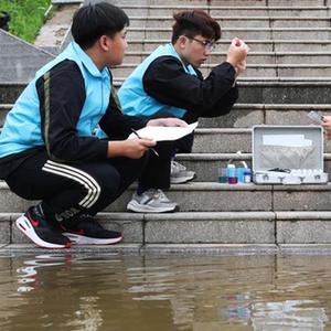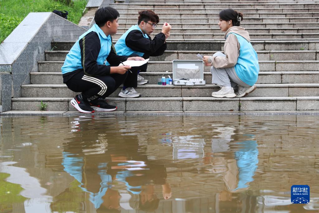 4月29日,在衡阳县西渡镇新桥村,南华大学的大学生志愿者在检测水质。当日是五一假期第一天,湖南南华大学的大学生志愿者们走进乡村,来到衡阳市衡阳县西渡镇新桥村开展劳动助农行动,他们为当地检测水质,描绘墙画,给农机进行检修和保养,用劳动实践助力乡村振兴。新华社发(曹正平摄)
